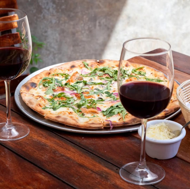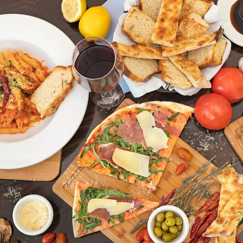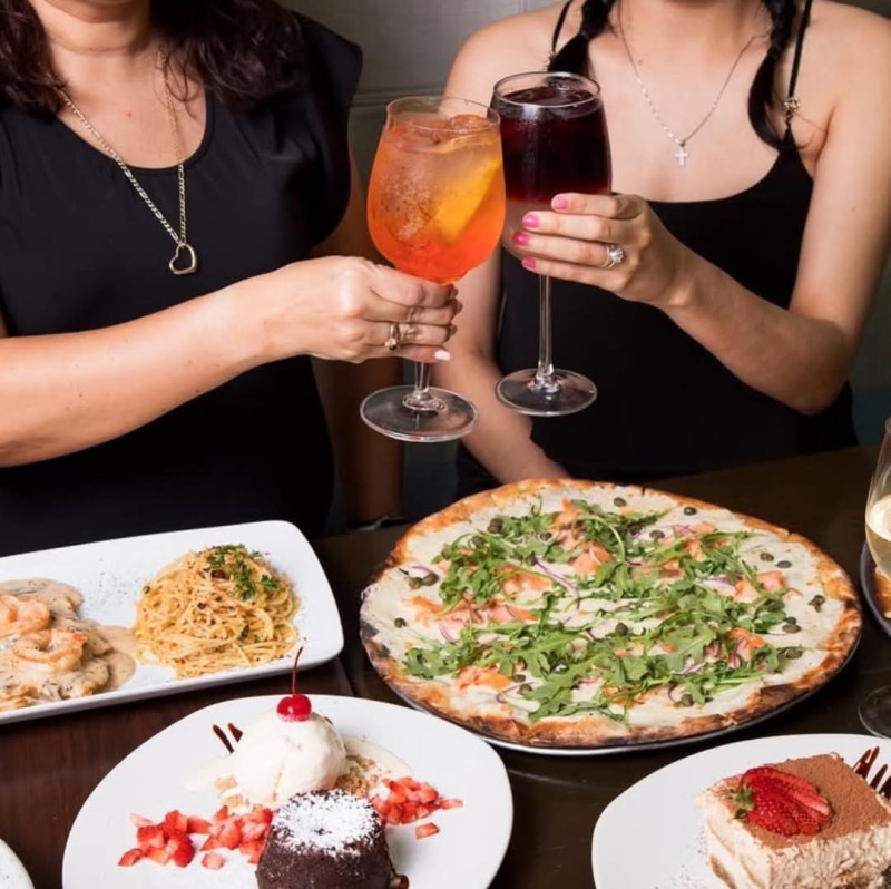 El menú es una oda a la gastronomía italiana, destacando entradas como el Carpaccio di Betabel (betabel, queso de cabra, nuez, arúgula y reducción de balsámico) y el Portobello Gratinado (portobello asado relleno de espinaca y queso ricotta). Entre las pastas, la Lasagna Il Cielo y el Fettuccine Mare e Monti (champiñones, camarones y crema) son imperdibles. Además, ofrecen pizzas artesanales y una selección de vinos cuidadosamente curada.