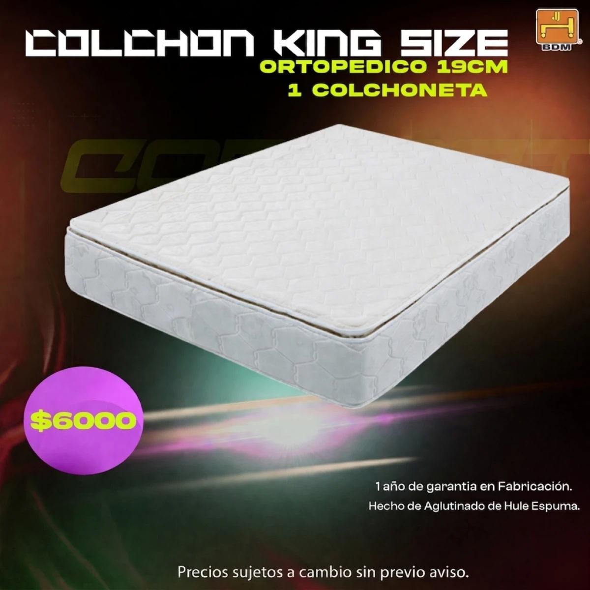 📢 El colchón King Size ortopédico de 19 cm está diseñado para darte el soporte que tu cuerpo necesita y el confort que tu descanso merece. Su material de hule espuma de alta resistencia se adapta a tu cuerpo, ayudando a reducir puntos de presión y mejorar tu postura al dormir.💤🛏️
